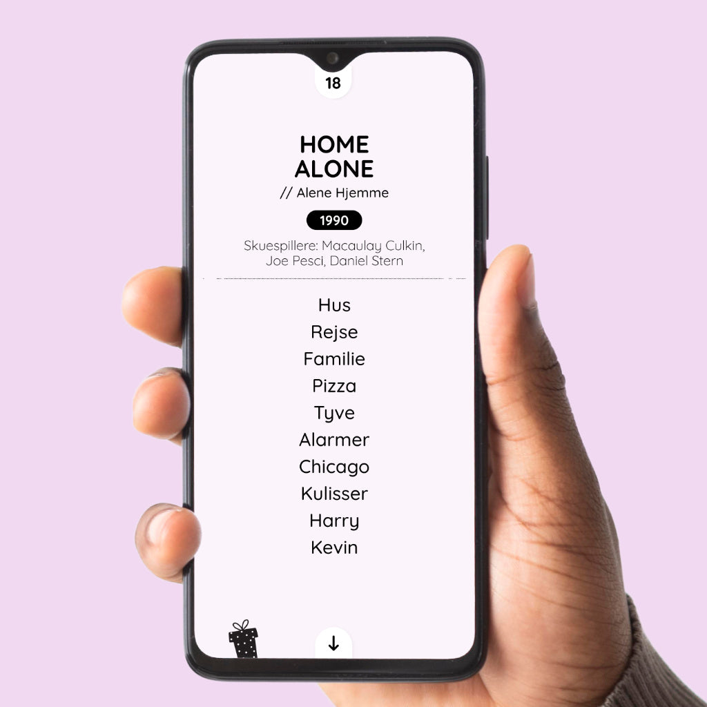 Som quizmaster skal du tage dine deltagere forbi 20 film som Fars Fede Juleferie og Die Hard, men også Home Alone og The Holiday. Vi har en tendens til at se de samme film jul efter jul, men kan vi huske, hvad de hedder?