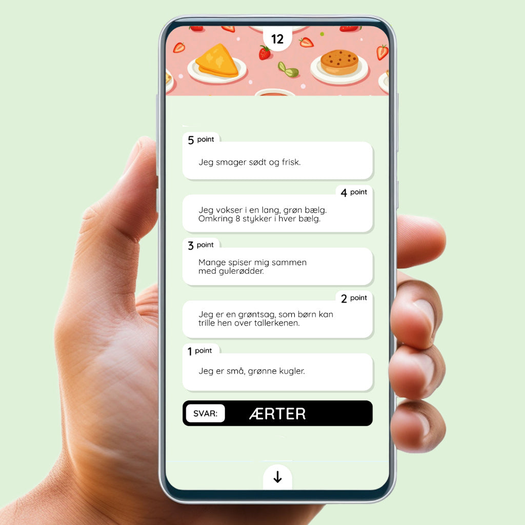 Quizzen er perfekt til børn i alderen 5-10 år, der elsker at gætte, lære og snakke om alt det, vi spiser (og måske ikke spiser!). Genial til bagsædet på køreturen eller en regnvejrsdag i sommerhuset – og en sjov måde at få børnene til at se på mad med helt nye øjne.
