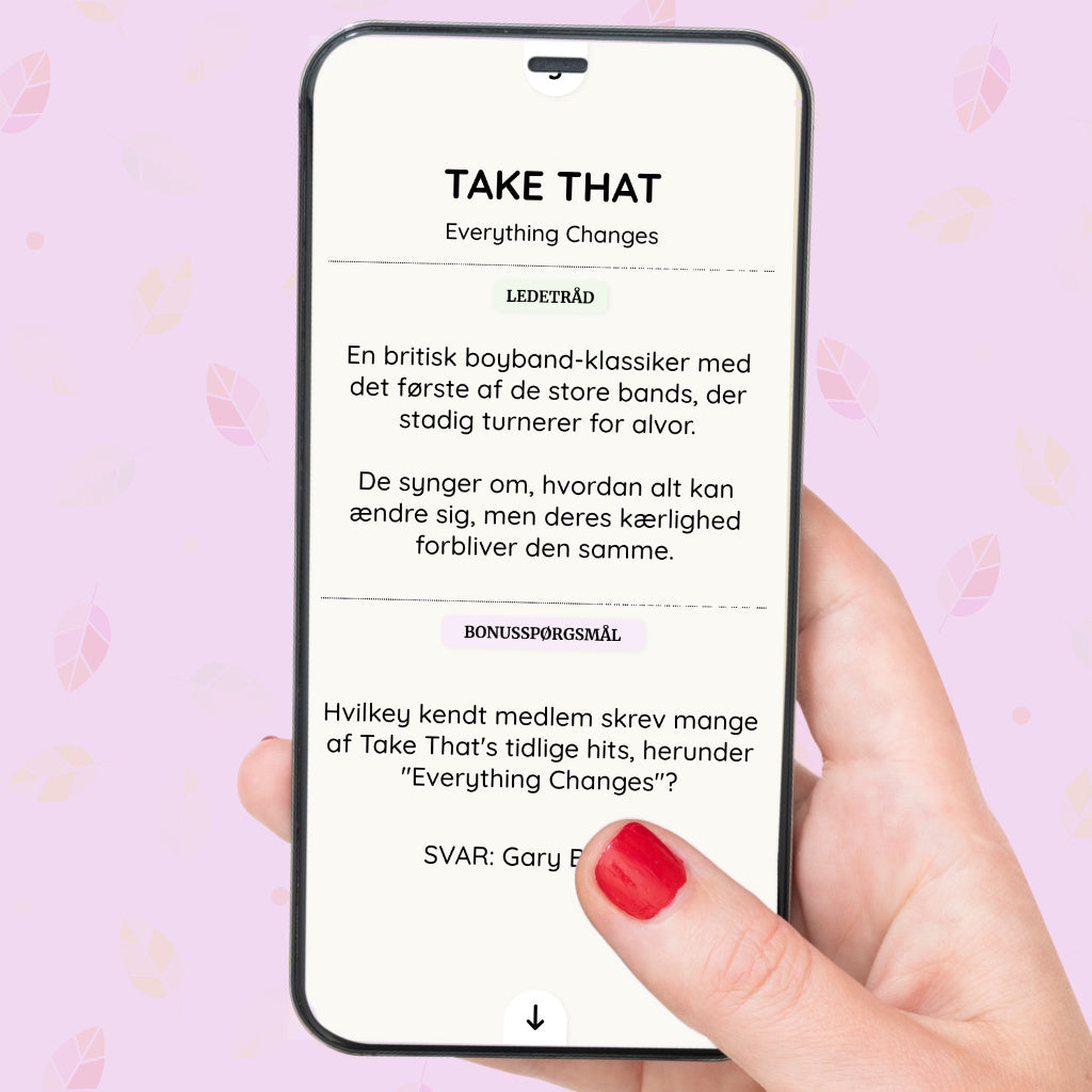 Hvert spørgsmål består af en sang, der skal gættes, men også ledetråde, der kan hjælpe på vej. Derudover er der til hver sang et bonusspørgsmål, der kan kaste dig og dine deltagere rundt i hele den populærkulturelle boyband-verden.